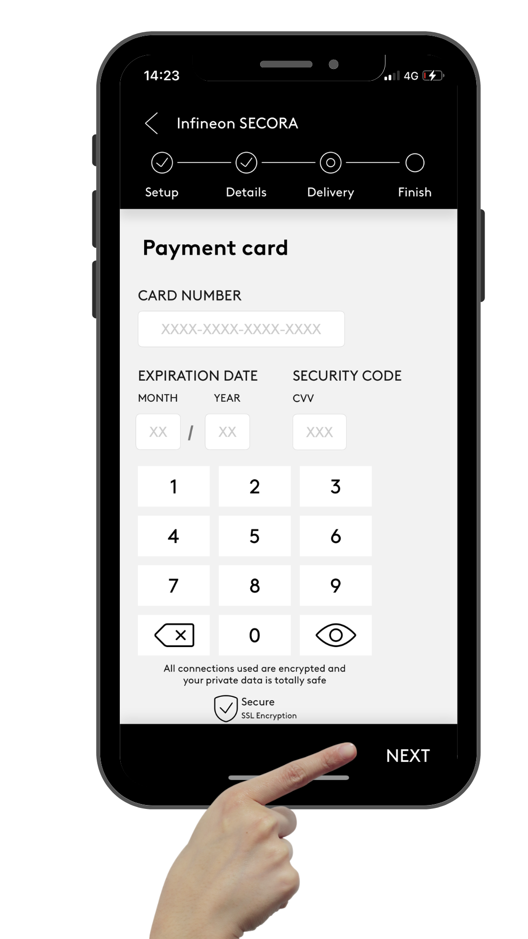 Schließen Sie Ihre Zahlungskarte an, wenn Sie Ihren Ring oder Ihr Wearable online kaufen.
