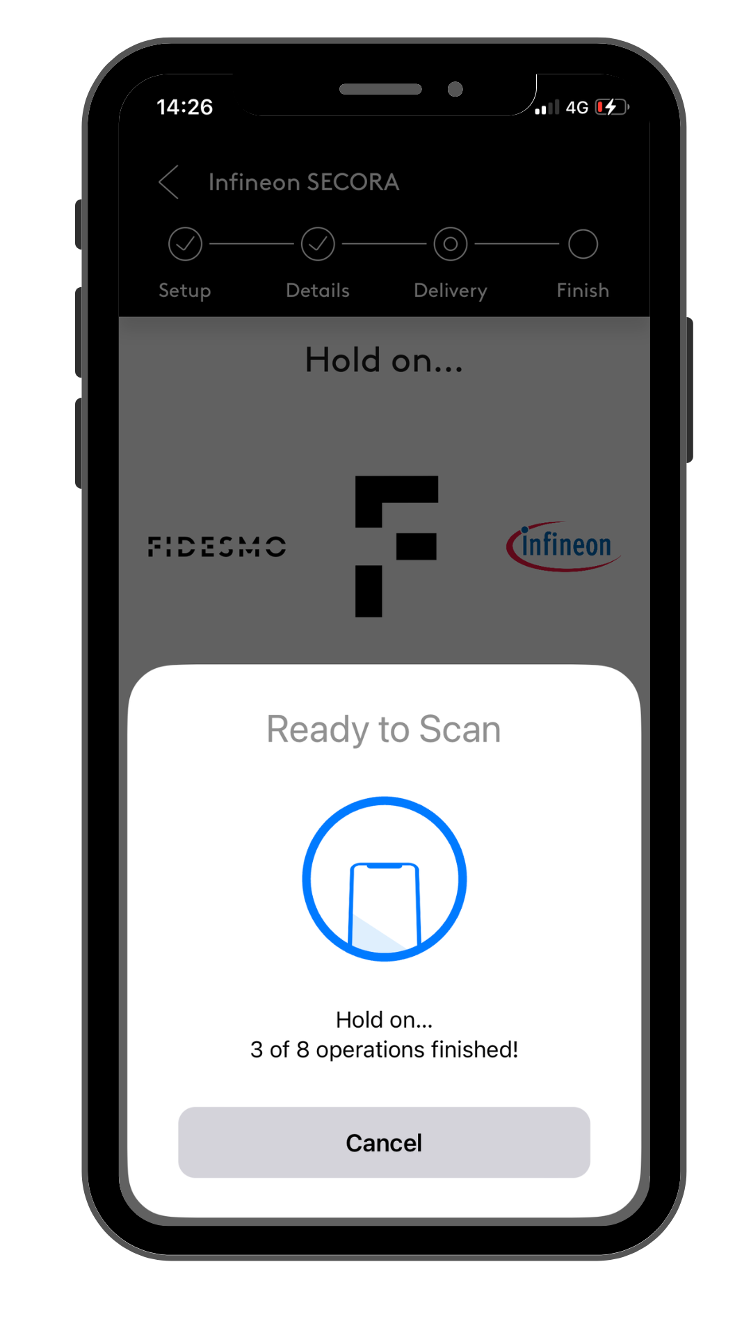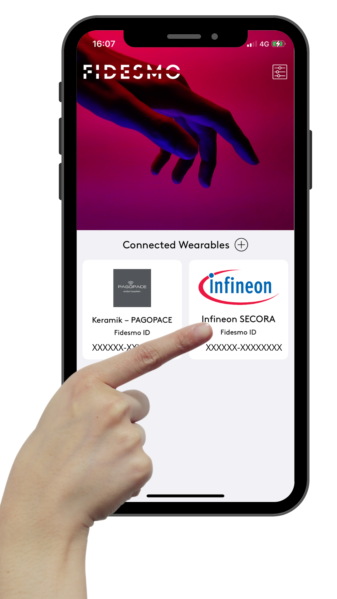 Schritt 1. Öffnen Sie die Fidesmo App. Ihr Ring/Wearable sollte auf dem Bildschirm angezeigt werden (falls nicht, lesen Sie bitte diesen Artikel).