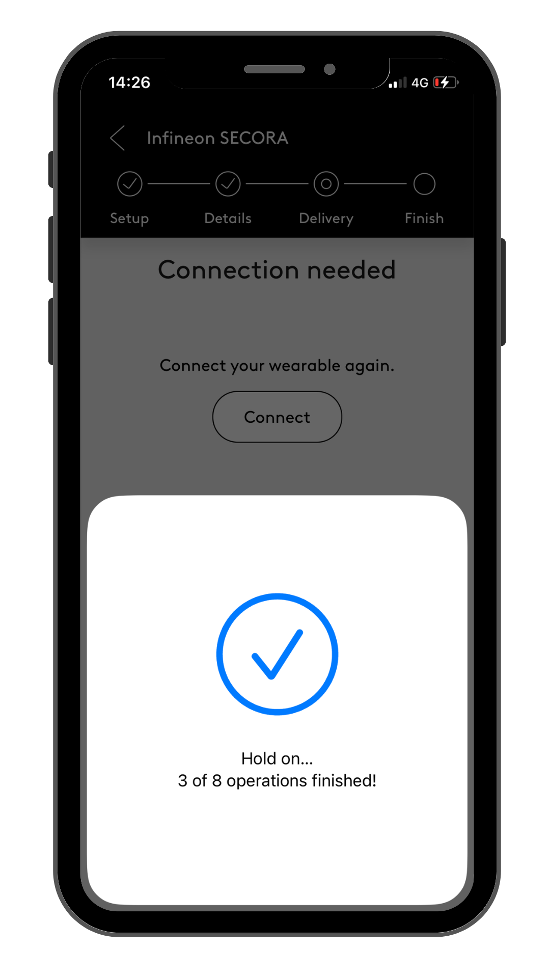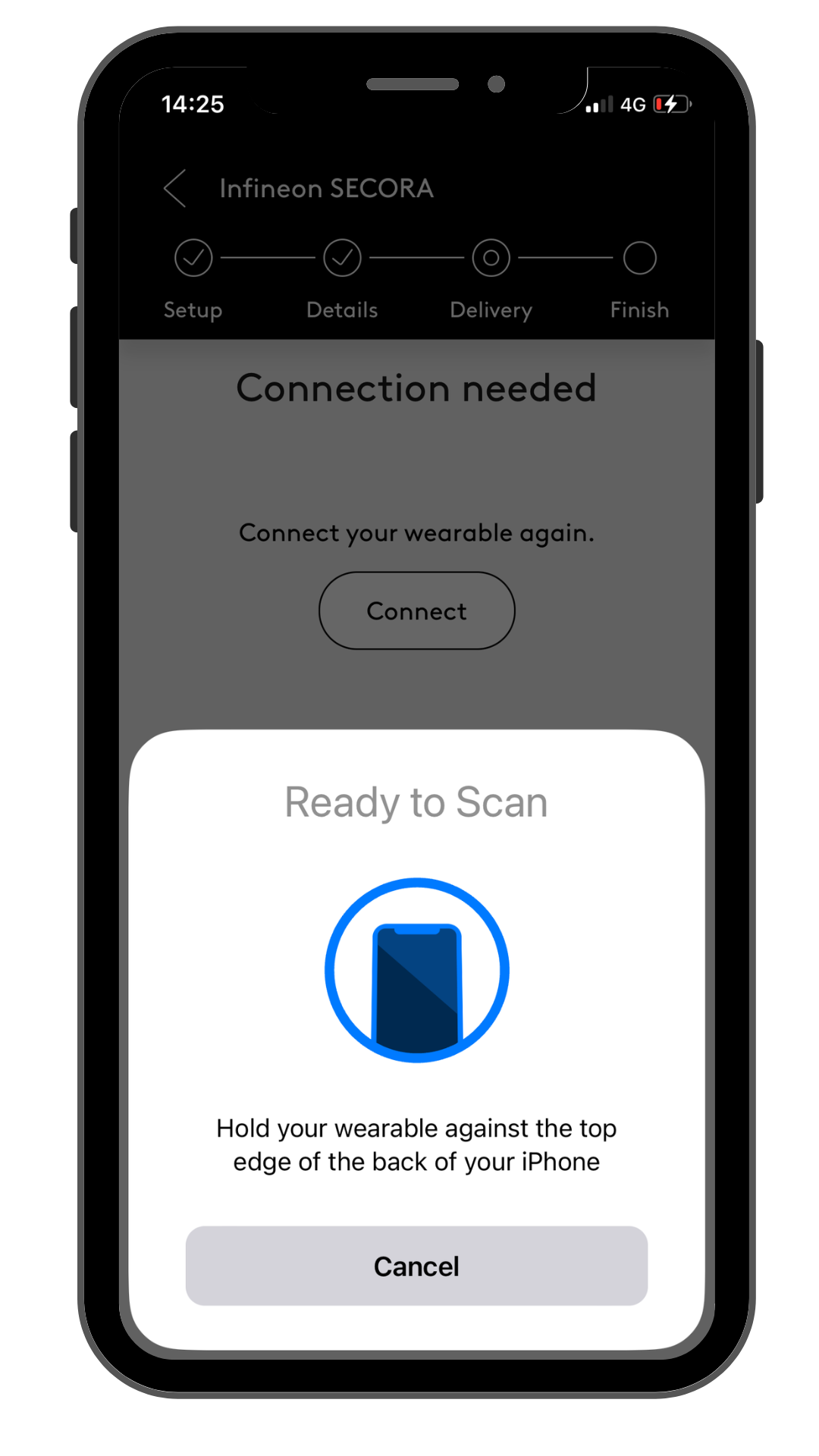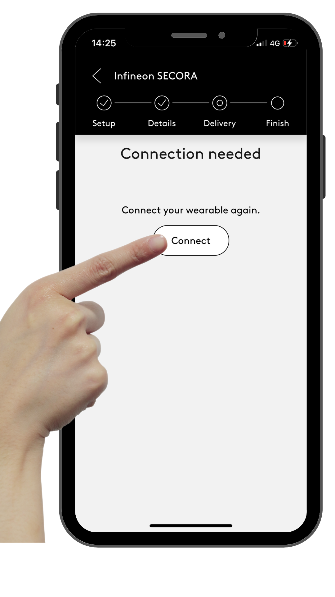 Schritt 12. Klicken Sie auf "Verbinden" und gehen Sie noch einmal zu Schritt 9, wo Sie Ihr Wearable auf der Rückseite des Telefons anbringen.