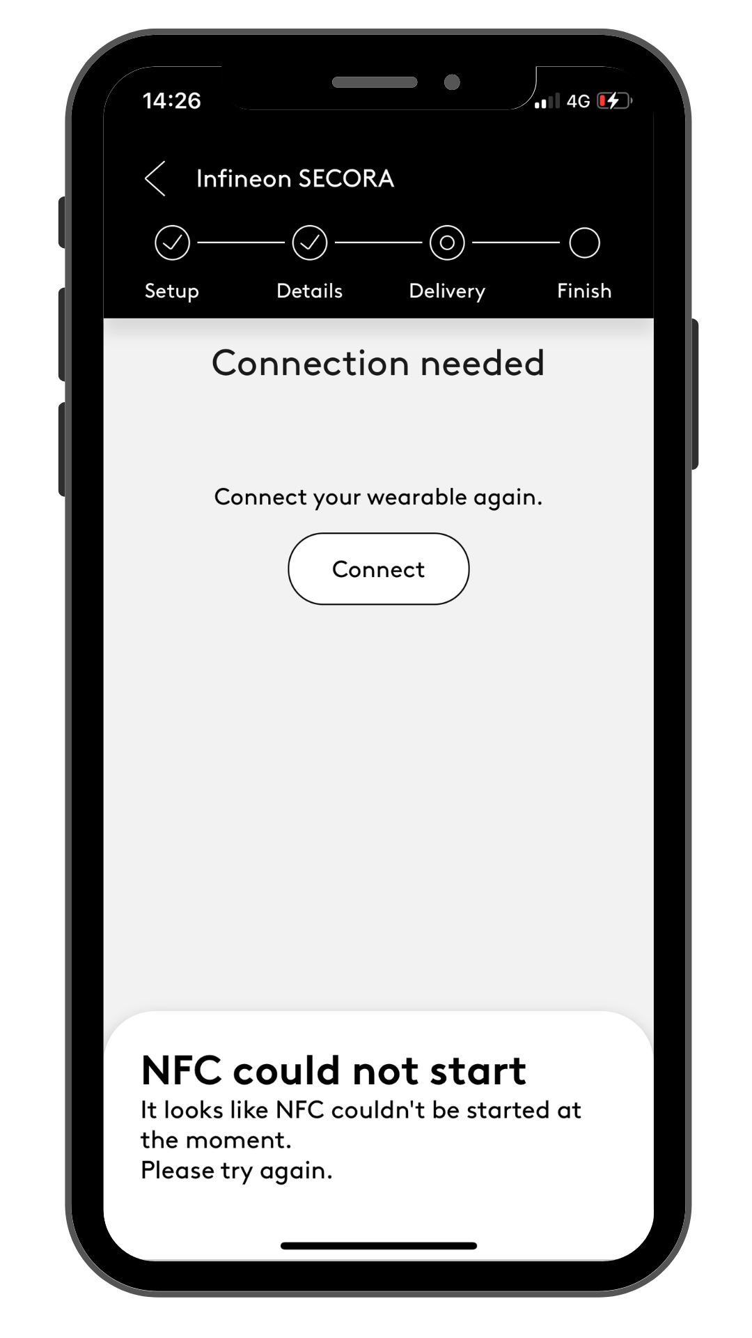 AUFGEPASST. Wenn Sie diesen Fehler erhalten, geraten Sie bitte nicht in Panik. Manchmal erhalten Sie diese Fehlermeldung: Die NFC-Funktion Ihres Telefons wurde deaktiviert. Bitte schalten Sie Ihr Telefon aus und wieder ein, damit das NFC des iPhones verbunden ist...